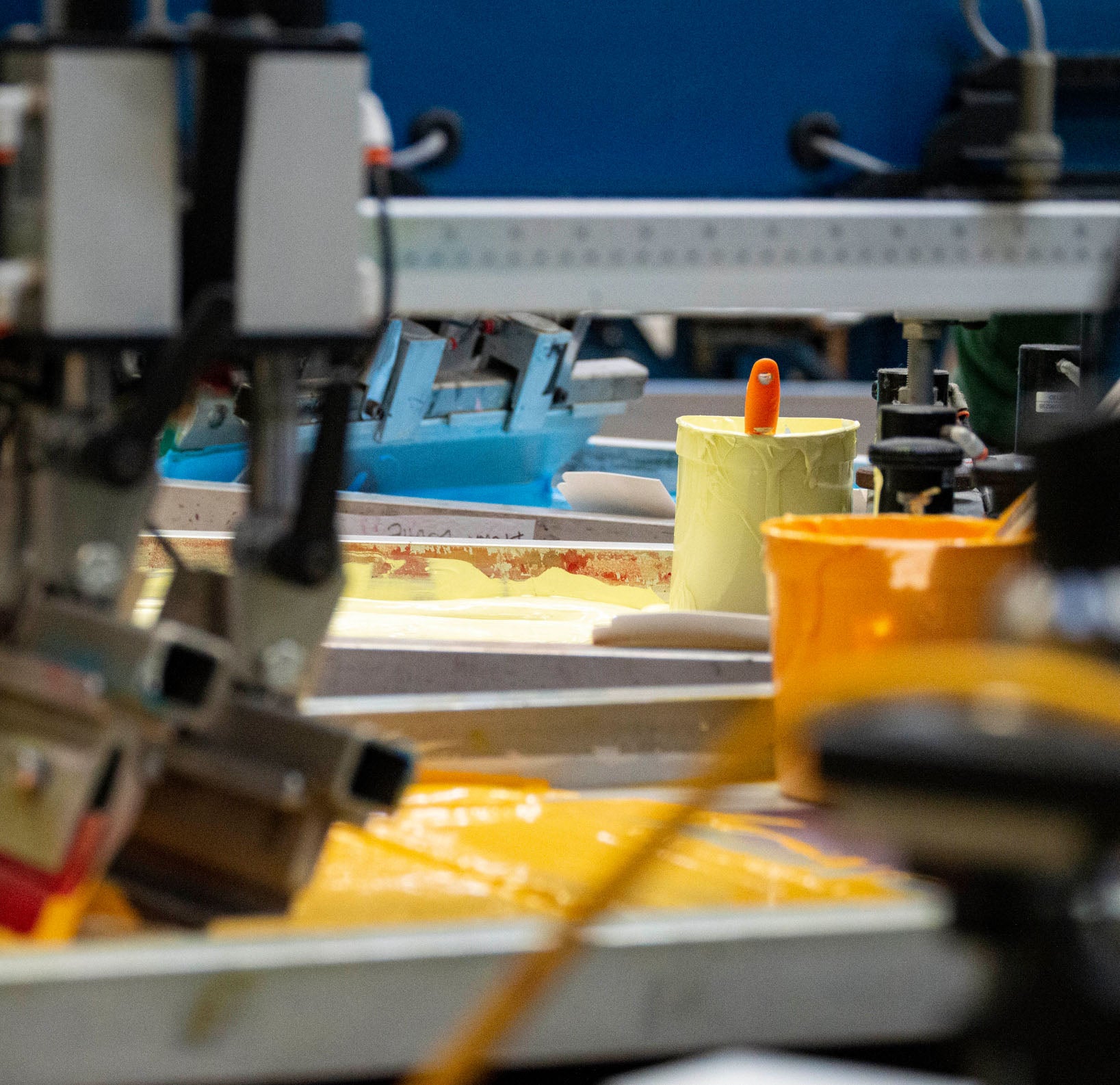 We primarily print with water-based inks, which are more difficult and less predictable than traditional oil-based plastisol ink. But water-based inks are the least toxic option for multi-color printing and leave a smooth finish once the garment has been washed. When appropriate, we can print with plastisol inks to accommodate polyblend garments or match an exact pantone.